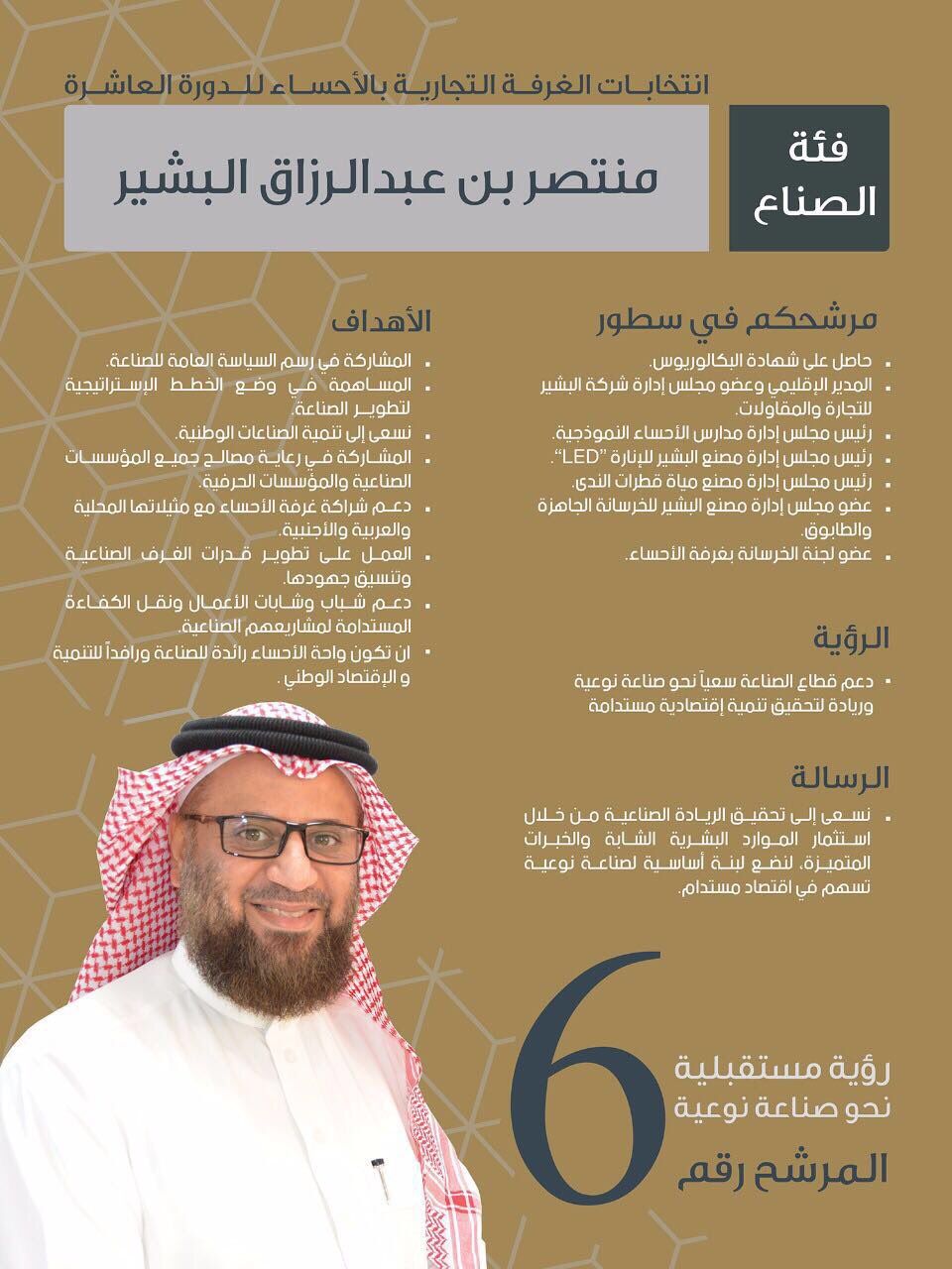منتصر البشير twitterissa رؤية مستقبلية نحو صناعة نوعية مرشحكم منتصر عبدالرزاق البشي ر فئة الصناع رقم المرشح 6 انتخابات غرفة الأحساء غرفة الاحساء الاحساء https t co 9akld2cpos