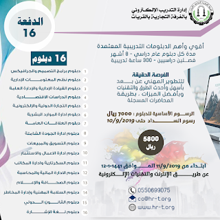 صحيفة تواصل الغرفة التجارية تقدم دبلومات تدريبية معتمدة لجميع أنحاء المملكة عن بعد 100 من الاشتراك وحتى الحصول على شهادتك خصم للسداد المبكر والمجموعات تقسيط شهري على 6 دفعات للاستفسار 0550699075 للتسجيل